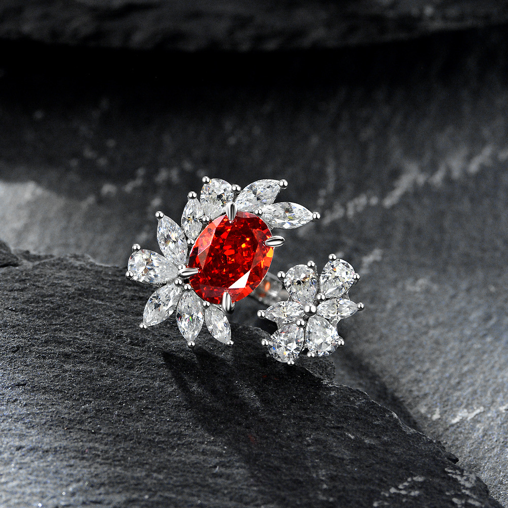 新款蛋形7*9冰花切帕德玛色高碳钻精致搭配925银开口戒指