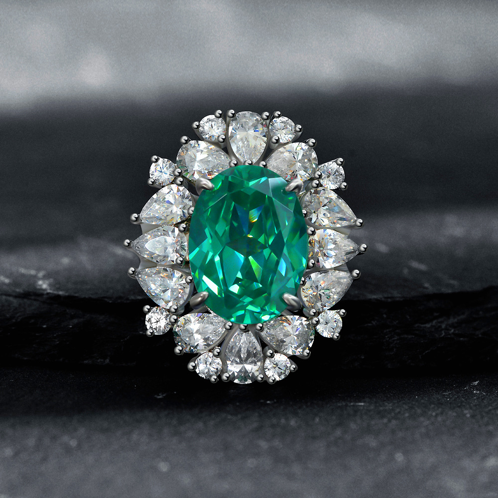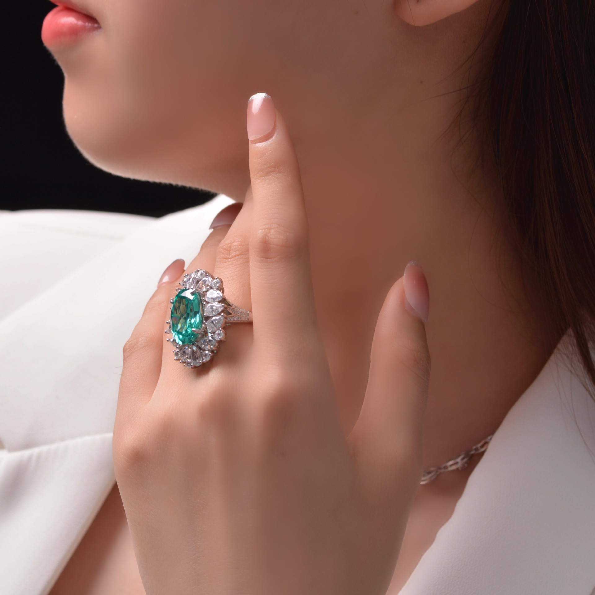 > 新品测试17ct蛋形合成帕拉伊巴12*16高碳钻戒指高端奢华